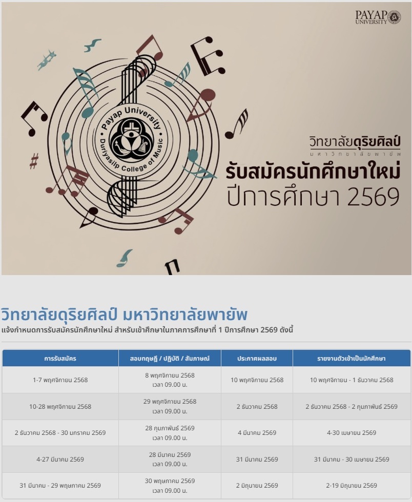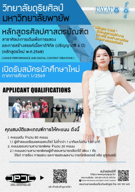 - ประกาศรายชื่อผู้มีสิทธิ์สอบข้อเขียน 7 ม.ค. 69 และติดตามกำหนดการสอบทางเว็บไซต์มหาวิทยาลัยพายัพ www.payap.ac.th